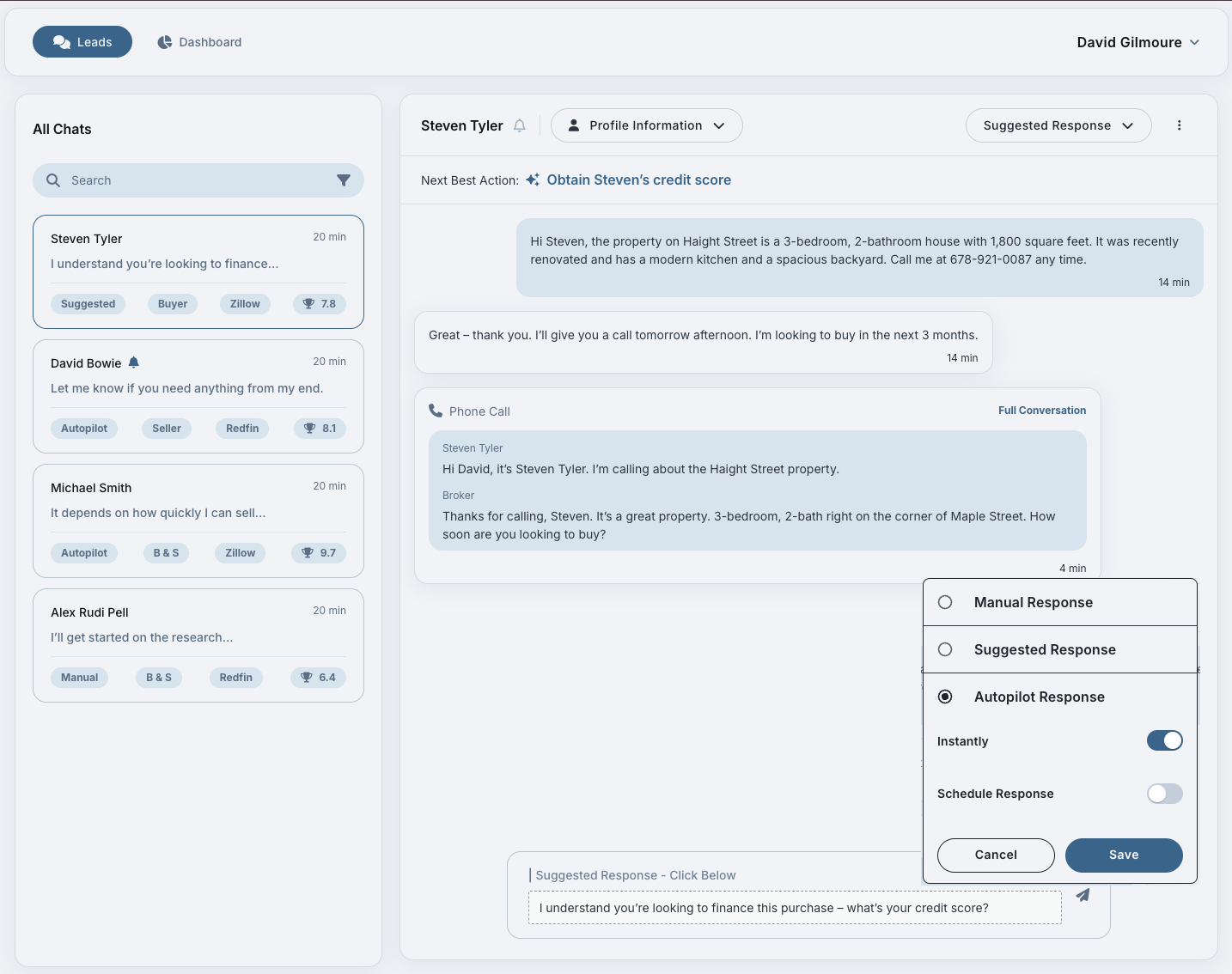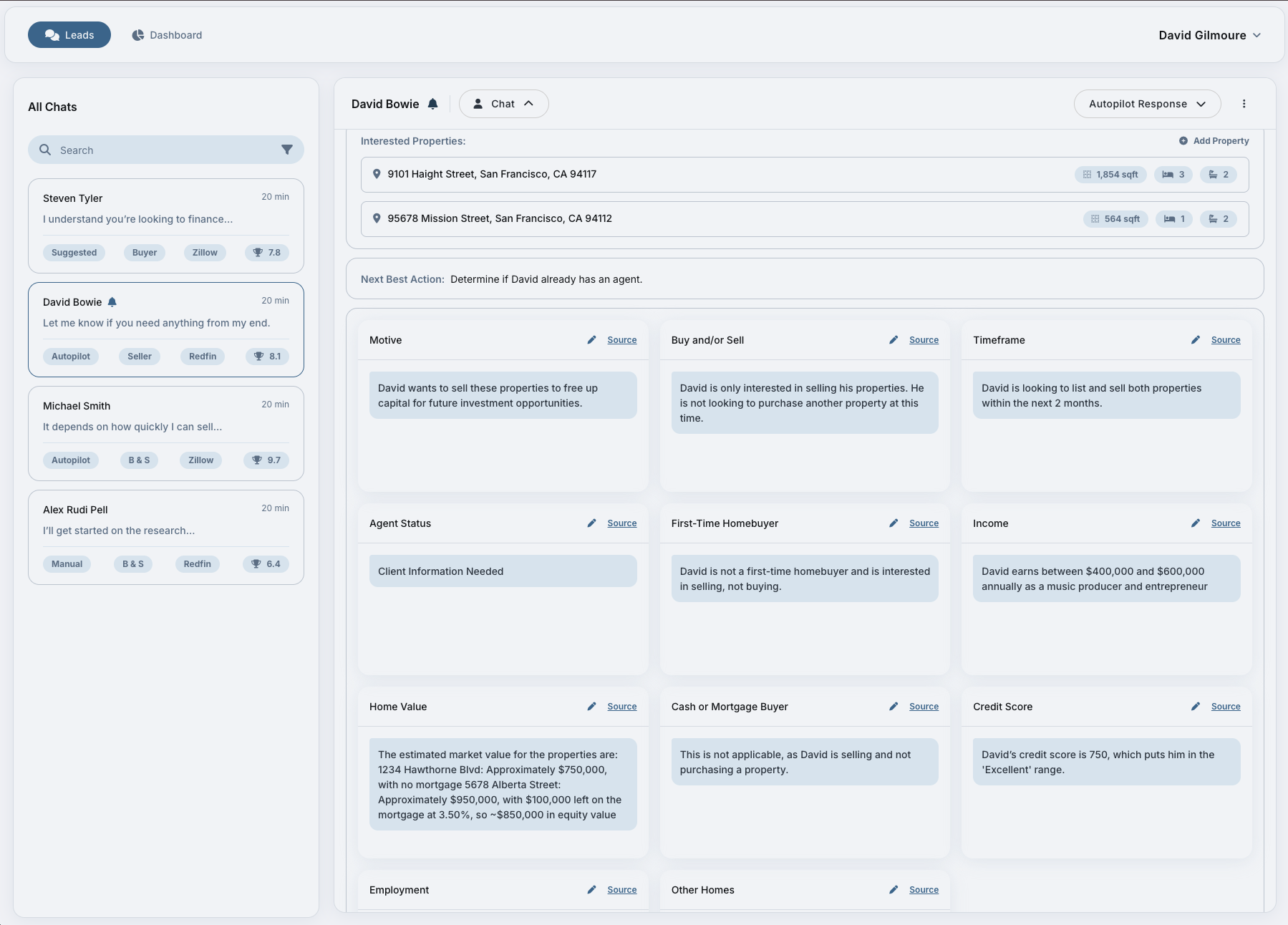 Utilize artificial intelligence (as much or as little as you want) that’s trained by thousands of agents and ISAs to collect key data points from clients to help you transact more and faster